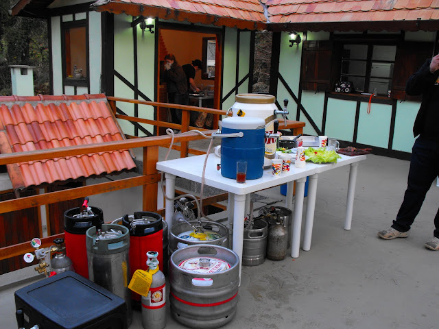 O trabalho todo começou já na sexta-feira dia 09 de julho. A base de apoio da brassagem foi o acolhedor Bar Beija Flor, casa comandada pelo hospitaleiro e simpático Fábio. Todo o planejamento da brassagem, como seria a degustaçõa e etc...foi elabarada durante boas horas de bons papos e boas cervejas no Beija Flor. Após, fomos conhecer as instalações da Cervejaria do Fritz ao som de uma acolhedora banda alemã que nos esperava..degustamos muitas comidas típicas e os chopes da casa.